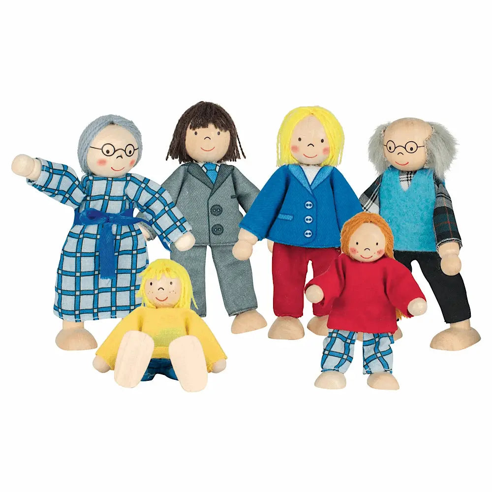 The wooden puppets are flexible. They can sit and stand and so they make the play more lively. They fit into all goki dolls houses.