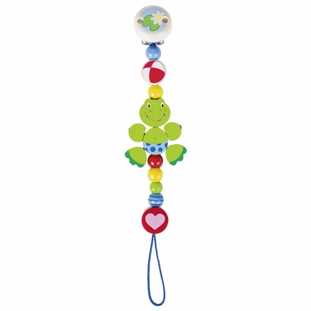 Dummy chains are clipped on the baby's clothes so the pacifier doesn't get lost and keeps the baby happy.